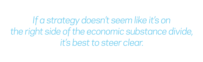 So, a word to the wise: avoid unnecessary tax risks! If a strategy doesn’t seem like it’s on the right side of the economic substance divide, it’s best to steer clear.