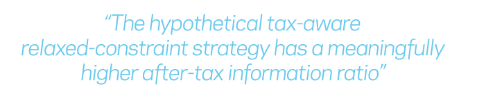 show that there is some pre-tax information ratio degradation due to tax awareness. However, as Figure 1 demonstrates, it is more than compensated by greater tax efficiency. Moreover, the hypothetical tax-aware RC strategy has a